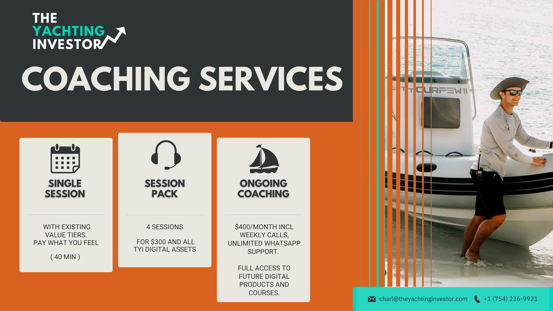 Book a 1-on-1 coaching session with The Yachting Investor - if it sucks, don't pay.